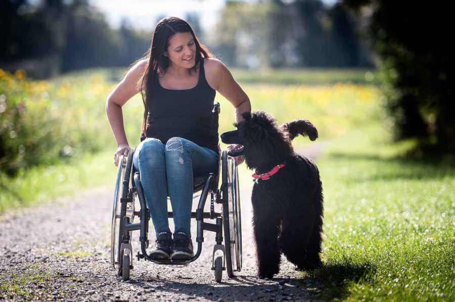 "Von dem Zeitpunkt, als ich meinen Assistenzhund bekam, bin ich eigentlich erst wieder zum Leben erwacht, bin wieder selbständiger geworden und lasse mich nicht mehr nur treiben, wie zuvor. Ich habe jetzt ein neues farbenfrohes Leben mit meinem Hund!"